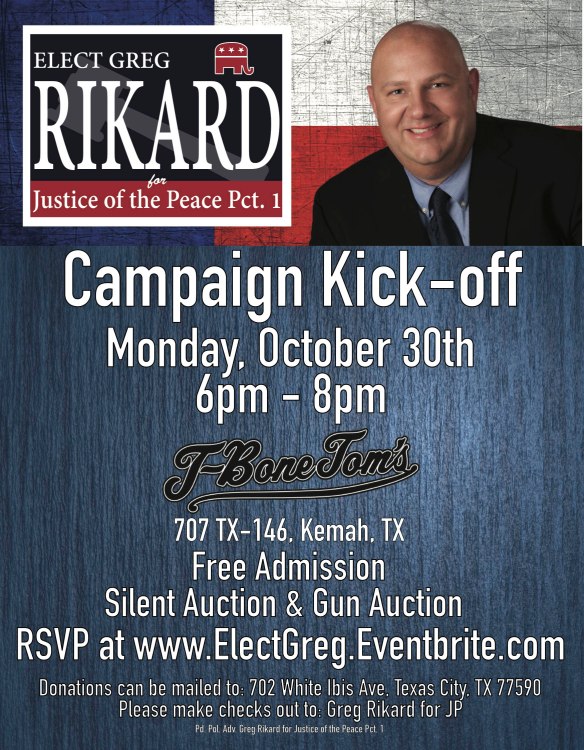 Donations: Thank you for supporting Greg Rikard for Justice of the Peace. Donations can be sent by mail or made online. Per Texas Ethics Commission rules, the Greg Rikard for JP campaign can only accept personal or PAC funds. No corporate checks are allowed.